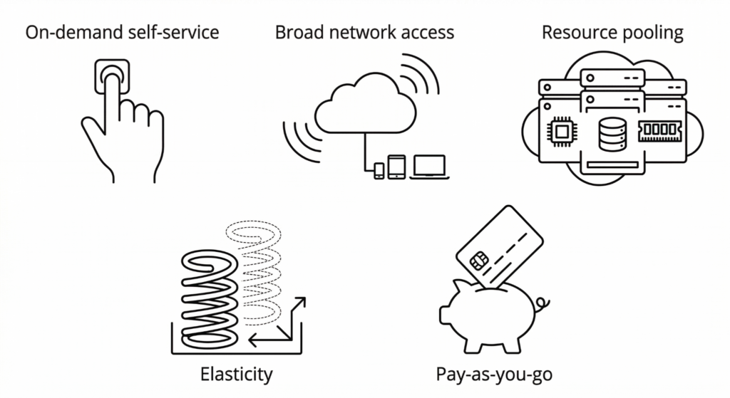 Para considerarse cloud se debe cumplir 5 condiciones.